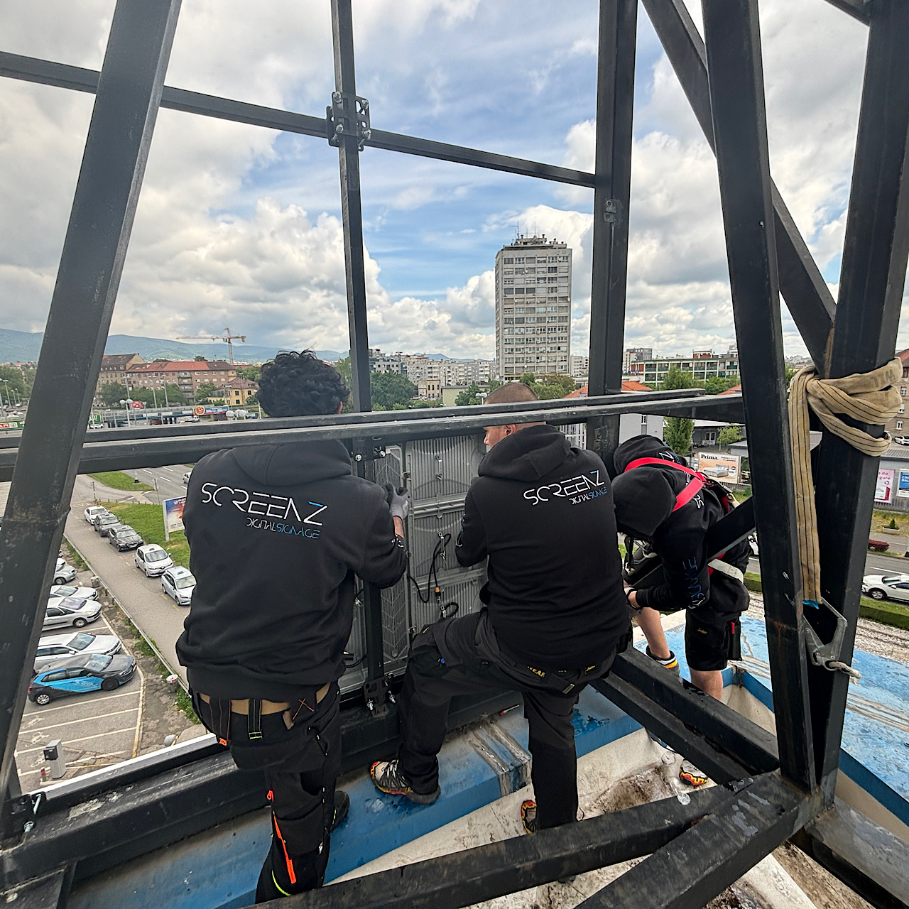 Installation einer neuen LED-Anzeige von 100 m² in Zagreb, Kroatien
