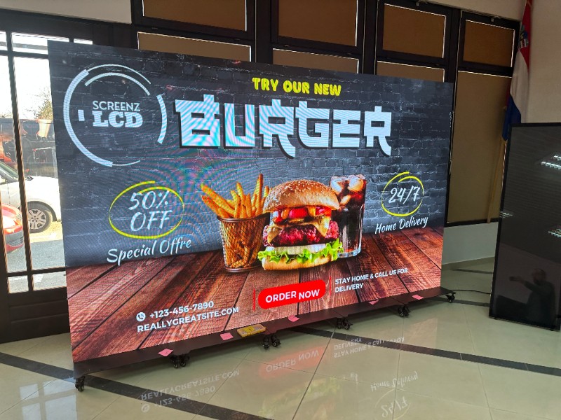 Digitalni LED panel privlači do 400% više pozornosti od statičnih reklama. Idealan za hotele, restorane, trgovačke centre, showroome, eventi i kongrese. Dostupan za najam po danu, tjednu ili dugoročno – ili ga kupite i posjedujte. Vaš brand uvijek u prvom planu.
